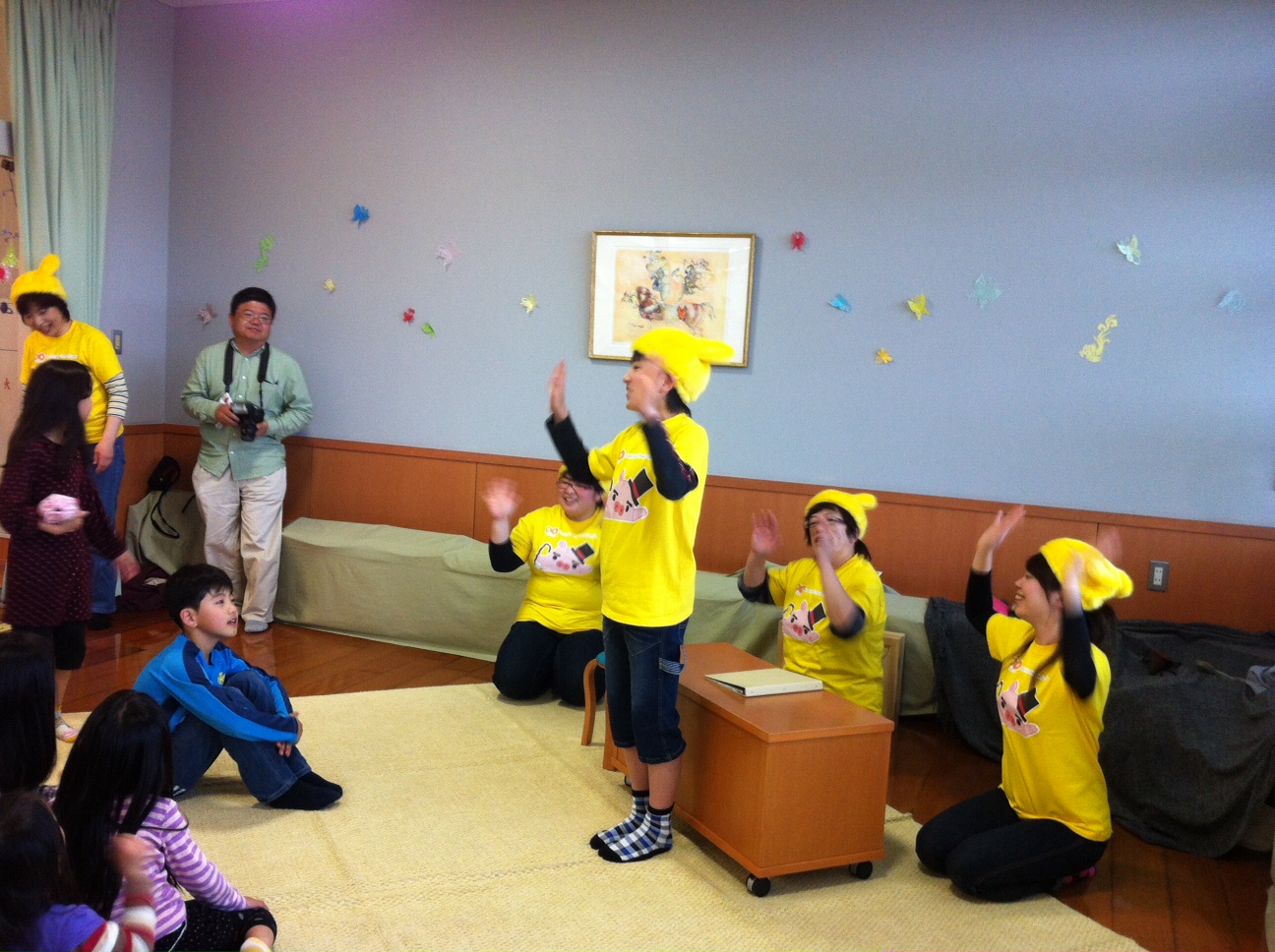 ![]() ![]() 白山市の松任図書館での朗読会にnonoが参加します。 nonoの生みの親である野々市市文化会館フォルテさんの自主事業 劇団銀河鉄道のぬいぐるみミュージカル 今年は、イソップ物語がテーマということで、 PRをかねて、イソップ物語の絵本と紙芝居を朗読します ![]() 日時 5月11日(土)午後3時~3時30分(劇団nonoの出演時間) 場所 松任図書館2階 こども図書館・おはなしルーム(白山市古城町1番地) nono以外にも、いろんなグループさんが朗読してくださるそうです。 nonoは劇団らしく、ちょっとお芝居ちっくに読みたいと思ってます ![]() 参加費は無料ですので、ぜひぜひお越しください ![]() By 広報担当 みき ========================================================== この読み聞かせの様子が、 5月12日付の北陸中日新聞に載りました ![]() 当日は、優太朗が手遊びで盛り上げてくれたおかげもあって、 20人くらいの子どもたちが集まってくれました ![]() 記事にも書いてありますが、用意したのは イソップ物語から 「ウサギとカメ」「ライオンとネズミ」「野ねずみと家ねずみ」の3作品。 どれも動物がモチーフだからか、小さい子たちも入りやすかったみたい ![]() みんなでそろえた、超目立つまっ黄色の、ののTシャツとのの帽子に興味をひかれて来てくれた子も ![]() 目立つって大事ですね ![]() 図書館の方には、 普段、他のグループがやっている読み聞かせと一味違って、 役ごとに人を変えて演じる読み方が、 子どもたちにとって新鮮だったみたい、と喜んでいただきました ![]() nonoにとっては、初の読み聞かせ、初の市外活動だったので、 ドキドキでしたが、子どもたちに楽しんでもらえてよかった ![]() 一生懸命、絵本を見つめる子どもたちがかわいかったぁ ![]() 今後、読み聞かせの活動も増やしていきたいと思ってます ![]() ご要望があれば、お声掛けください!! By 広報担当 みき PR この記事にコメントする
