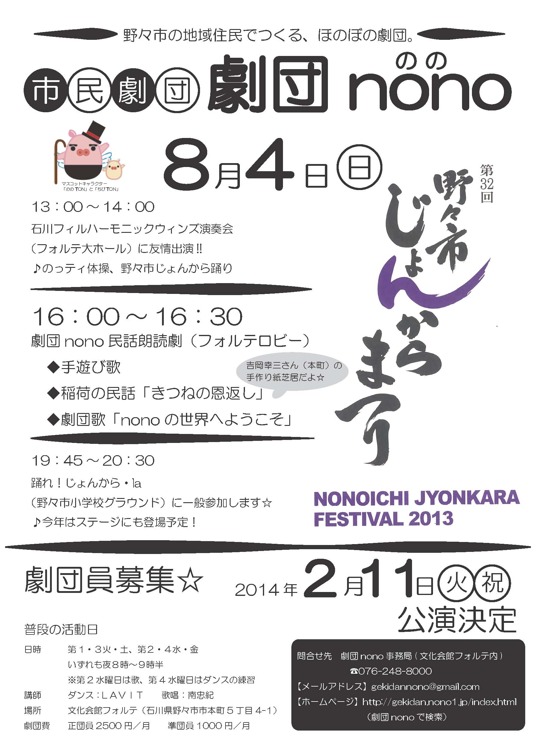 出演(劇団員5人) のっティ体操・野々市じょんから踊り など