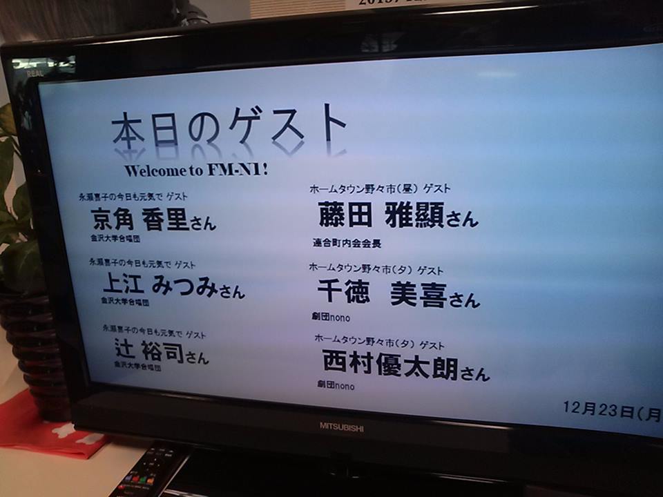 再び、えふえむエヌ・ワンさん(野々市市のコミュニティ放送局)の番組で公演のPRをさせてもらうことになりました