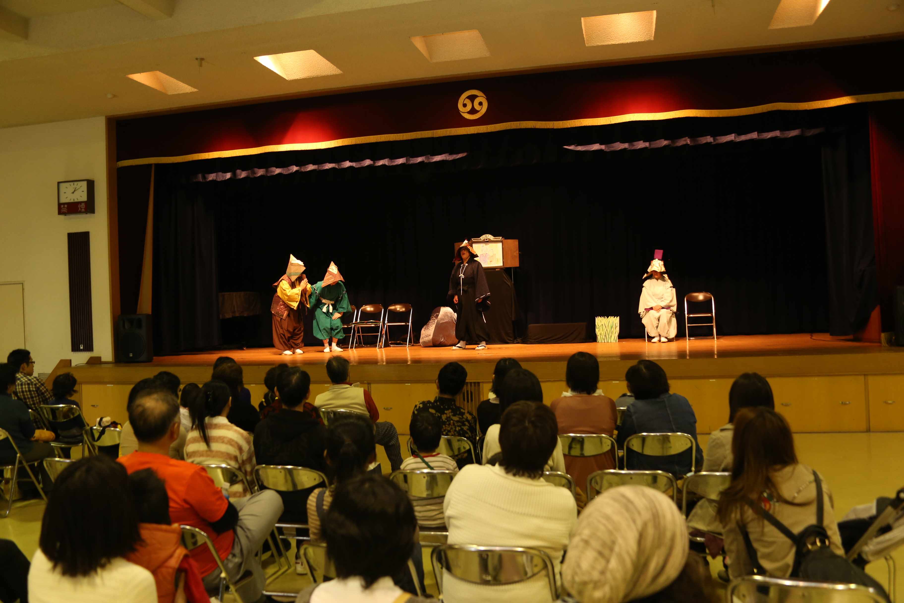 野々市市の郷土資料館で、今年3回目の民話劇「きつねの恩返し」を披露しました! 土間の部分を舞台にして、お客さんには板間からちょっと見下ろす形で見てもらいました。 土間は広いし、板間はゆったり座れるし、声は響くし、ちょうど良い感じに薄暗いし、 お芝居を見てもらうには、とっても良い環境でした!! こんな会場を使わせていただいて、ラッキーです 劇団nonoの前には、人形劇団くるりんぱの西川洋子さんによる民話の読み聞かせ。 お着物姿がとってもお似合いで、雰囲気作りがお上手でした~ そして、劇団nonoの番。 お芝居が始まっても、 古民家から漏れ聞こえる音楽やセリフが物珍しいからか(?)、 どんどんお客さんが入ってこられて、満員御礼+++でした! ご来場いただいた皆さん、本当にありがとうございました!! 野々市の最大のお祭り・じょんからまつりで披露した劇だったので、 「なんだー、一緒の話か~」と言われるかと思ったら、 「初めて見たよ~」という方がほとんどで、 劇団nonoも民話劇もまだまだ認知されていないのだなぁ… と、嬉しくもあり、悲しくもあり複雑な気持ちでした 新団員の早織ちゃんとひろあきさんは堂々デビュー 今回もたくさんの方に楽しんでいただけたようで、よかったです そして、市の提案型協働事業に採択されたことで、 衣装と音響機材を新たに購入することができ、 劇全体の質が向上したと思います 次は、11月4日(月・祝)に「マナビィフェスタ」で民話劇やります!! 場所は野々市市中央公民館で、時間は午後1時~1時30分です 当日は、nonoがお店も出すよー |