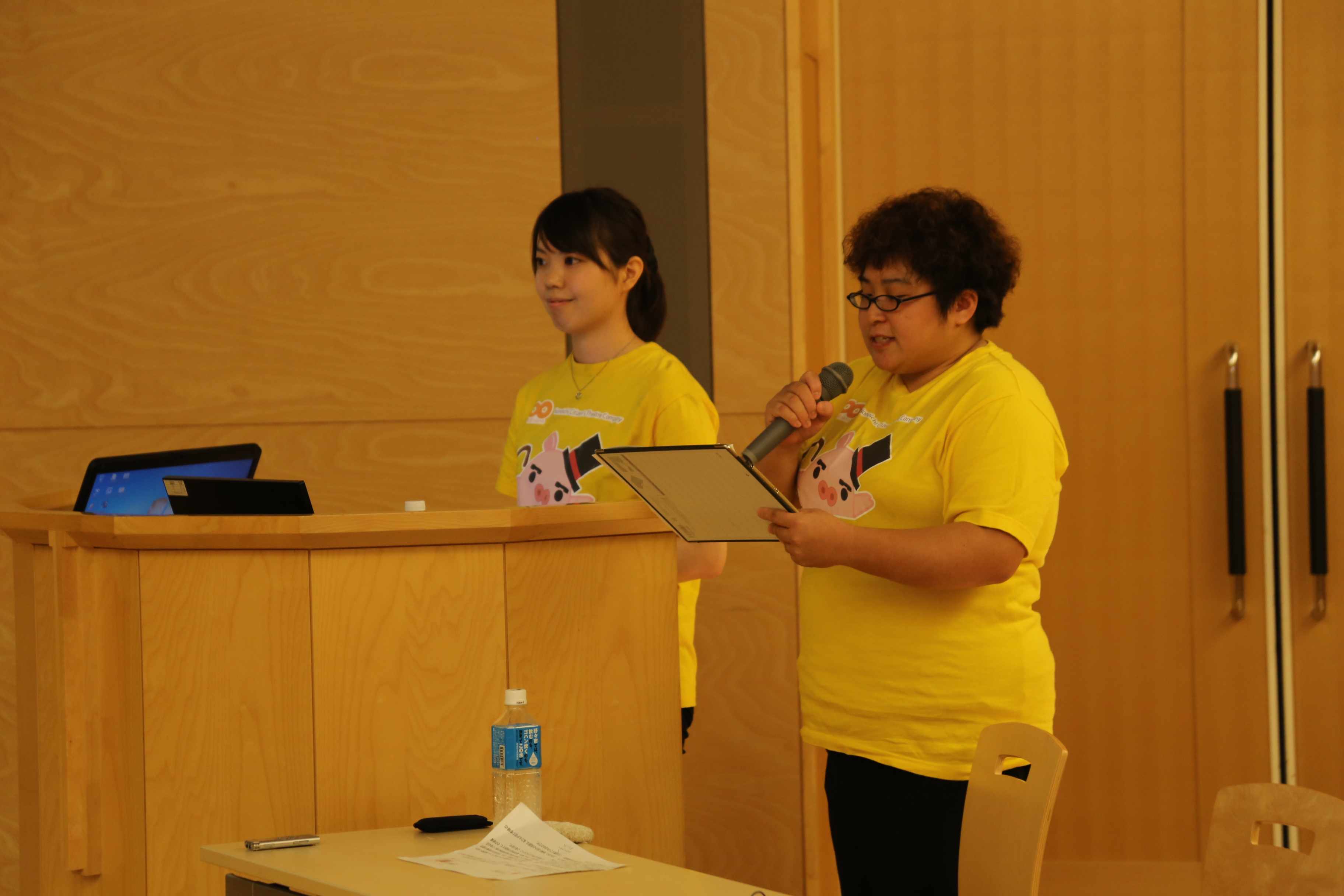 当日は、会場に朝10時入りして、撤収したのは夜9時30分…。 とっても熱い1日を過ごさせてもらいました その様子を時系列でお伝えします!! 10:00 会場入り じょんからまつりはいろんなイベントがあるので、他の団体として違うイベントに参加するメンバーも。私も、前日(まつり1日目)は仕事として会場に張り付きでした。 なので、みんなそれぞれに忙しく、最後に全員がそろって練習できたのは、なんと5日前!!こわっ 朝から集合して練習すっぞー!!と思いきや、主役のぐっさん(富樫家近役)が午後からしか出れないとの緊急事態 とりあえず、いるメンバーで練習する。 11:50 舞台リハ 石川フィルハーモニックウィンズさんの舞台リハ。「野々市じょんから節の間奏で何かしてて」という、団長池田さんからの無茶ぶりが。 12:20 紙芝居部分の通し稽古 とりあえず、ここだけでもやっておかねば!ということで、通し稽古。 12:50 石川フィルハーモニックウィンズ演奏会 司会(千徳)。カゲアナをするために10分前に舞台袖へと走る。同じ会場内とはいえ、ひやひやのスケジュール。他の団員は休憩? 13:40ごろ 劇団nono出演 のっティ体操、野々市じょんから踊り、そしてアンコールの銀河鉄道999に出演。 団長池田さんからの無茶ぶりは、なんと我らがダンス講師・LAVITさんへと無茶ぶりされ、華麗なパフォーマンスが披露されました!! すごすぎるよ、LAVITさん 14:00 通し稽古 フィルさんの舞台が終わったら、すぐ楽屋に戻って、通し稽古。 ダンス(きゃりーぱみゅぱみゅ)・紙芝居朗読劇・ダンス(劇団歌)のフルコース。 わずか30分だけど、汗だく。 最後の劇団歌「nonoの世界へようこそ」がひどすぎると、ダンス・歌の両先生からダメだし。 劇団歌だけ、再練習。 15:30 仕込み 本番30分前。今回はオープンスペースでのお芝居のため、直前まで仕込みができず。 仕込み終わったら、そのまま呼び込み開始。 すでに、お客さんらしき人たちがちらほら。 16:00 紙芝居朗読劇、本番 始まってしまったら、あとは楽しむのみ お客さんがあたたかくて、笑ってくれたり、劇の途中でも拍手をくれたり 客層は子どもからおじいちゃん・おばあちゃんまで! 外では、今年のじょんからまつりの目玉イベント「エアアイドル選手権」がやっているにもかかわらず、たくさんの人が来てくれました。 本当にありがとうございます!! 17:00 本番終了・撤収 終わったらすみやかに撤収します。 いろんな人に声をかけていただき、お話をさせていただきました。 「きつねの恩返し」の民話が伝わる稲荷町の人たちが喜んでくださったのが印象的でした 17:40 休憩 しばしの休息。屋台に繰り出す人、お昼寝する人などなど。 19:00 じょんから・laの準備 ぼちぼち衣装を着たりし始める。 ここで本日2回目の無茶ぶりで、LAVITさんへ衣装が渡される。 まさか…… 19:45 じょんから・la開始 グラウンドの会場に出て、サンバ調のじょんからが流れ始める。 さぁ、フィナーレの始まりです!! そこには、LAVITさんの姿も 特別ゲストとして、劇団nonoチームに入ってくださいましたー 今年は、中央ステージにあがることもでき、劇団nonoをPRできました 20:45 じょんから・la終了 南さんがみょーなハイテンションになって大変でしたが、みんな汗だくでがんばりました!! 21:30 解散 ながーい1日でした。でも思い出に残る1日でした。 打ち上げに行きたいという小学生’sをなだめて、それぞれの家路につきました。 来年も参加しようね (おまけ) 8月6日(火)に打ち上げしましたー!!